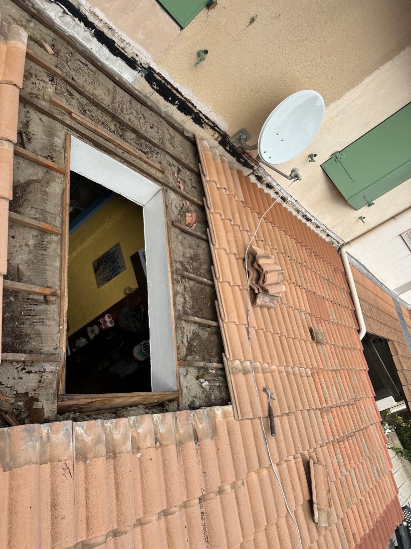 La problématique de ce chantier réside dans la combinaison des multiples étapes nécessaires pour parvenir à une toiture rénovée et fonctionnelle. Premièrement, la toiture présente des signes de vieillissement, tels que des mousses, lichens et autres impuretés compromettant son étanchéité et son esthétique. De plus, les fenêtres de toit Velux, vieillissantes et peut-être endommagées, nécessitent d'être remplacées pour éviter toute infiltration d'eau et améliorer les performances énergétiques.